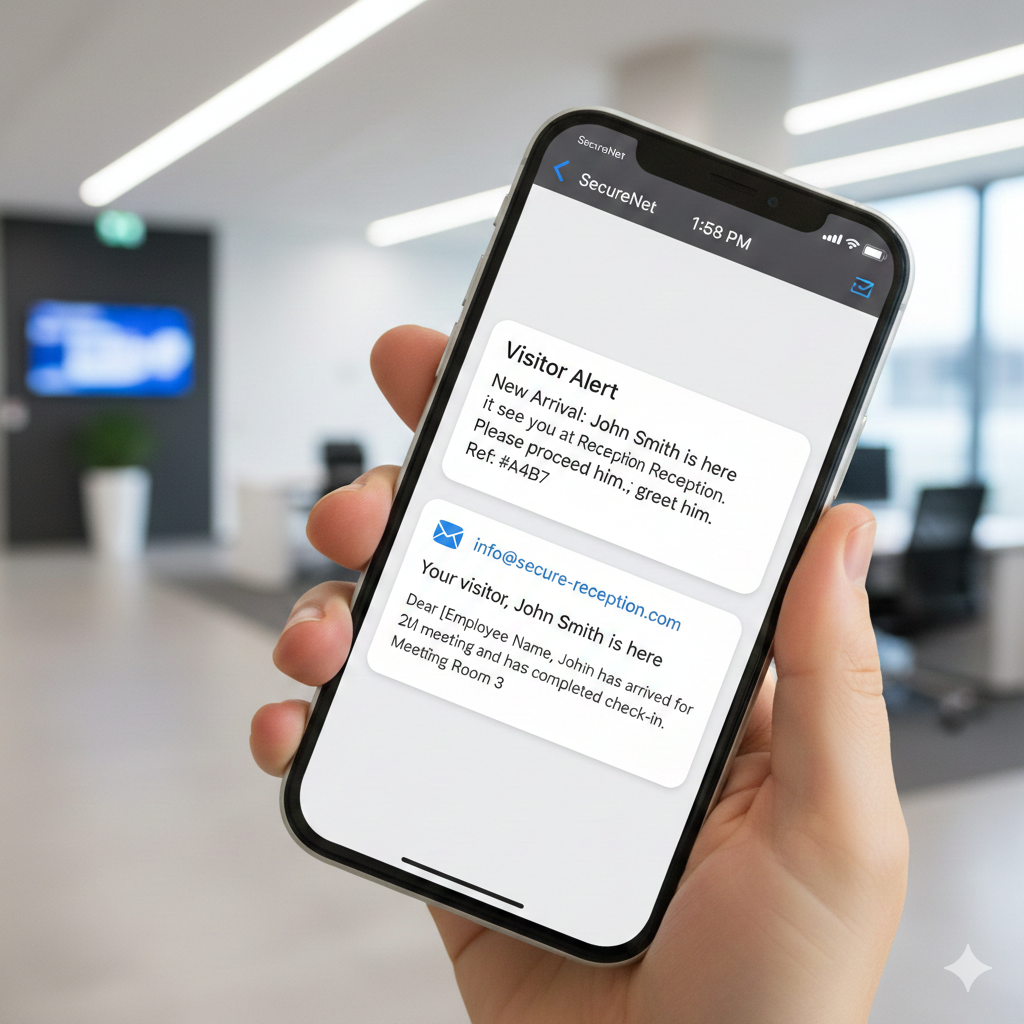 Host receives an immediate real-time notification via email and /or SMS with the visitor’s details.